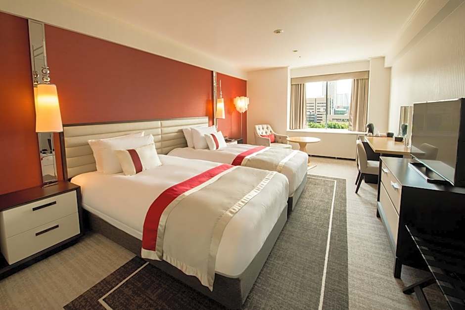 The twin room includes a private bathroom, well-fitted with a bath, a shower, a bidet, a hairdryer and slippers. This twin room is air-conditioned and has a seating area with a flat-screen TV, a wardrobe, a safe deposit box, an electric kettle, as well as a carpeted floor. The unit has 2 beds.